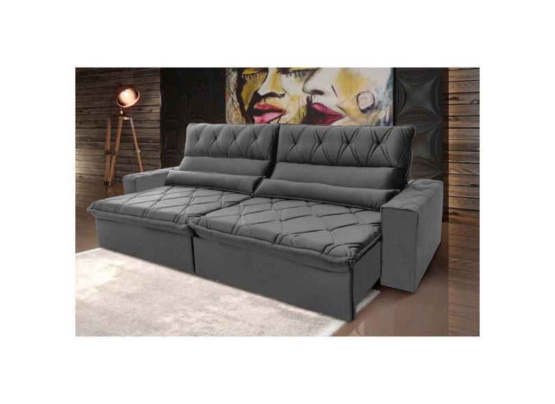 Sofá Retrátil Reclinável França 2,30m Suede Velut Cinza c/ Molas no Assento - King House