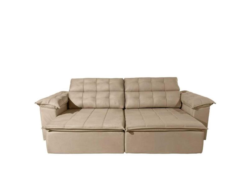 Sofá Retrátil Reclinável Glamour 6 Lugares Veludo Bege 250cm Megasul