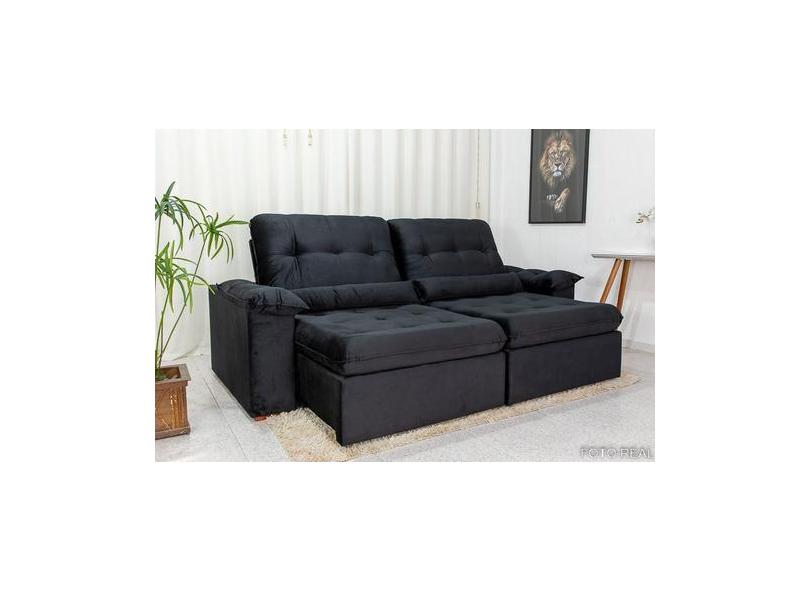 Sofá Retrátil Reclinável Imperial 2.50m Preto Molas Ensacadas - IMPÉRI