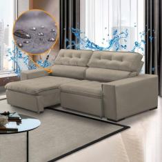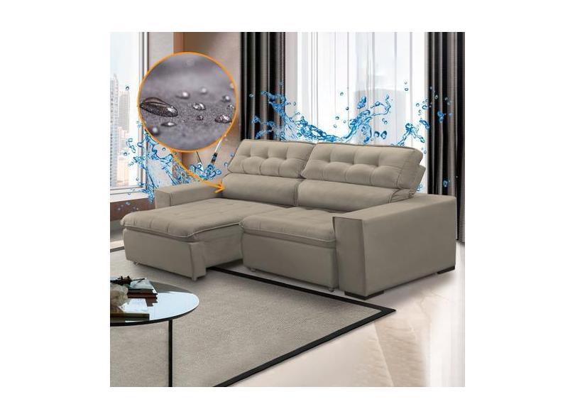 Sofá Retrátil Reclinável Impermeável Chicago 230 Cm Tecido Veludo Bege