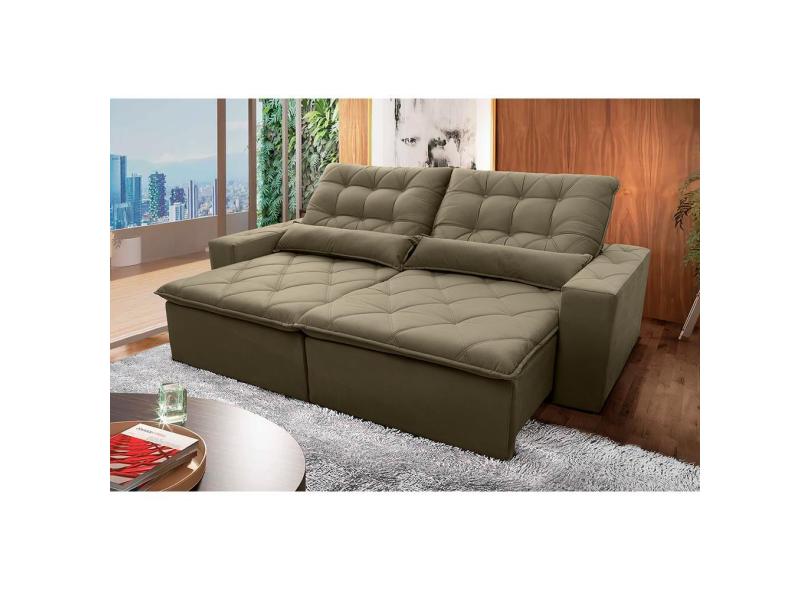 Sofá Retrátil Reclinável Islândia 2,30m Suede Velut Bege c/ Molas no Assento - King House
