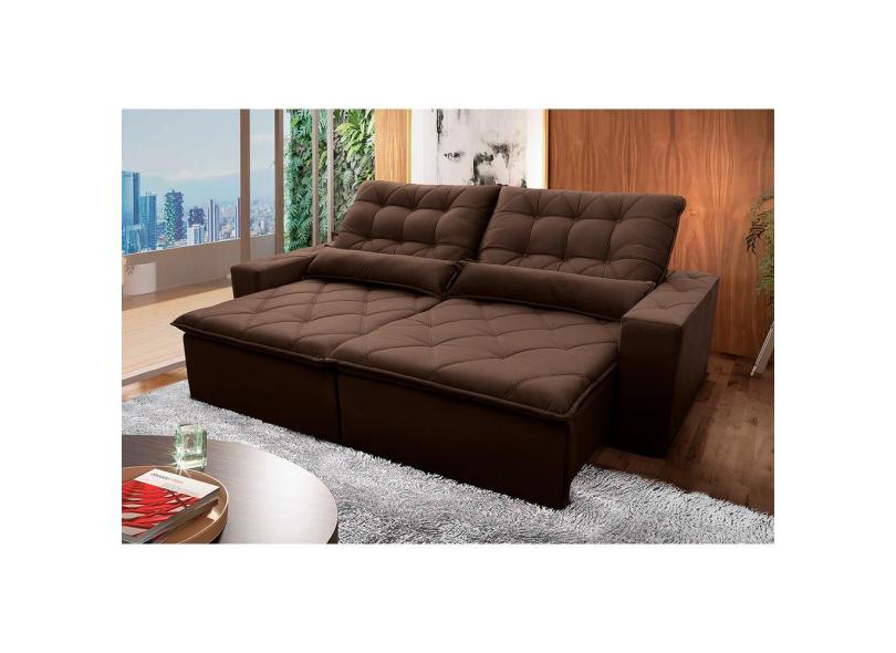 Sofá Retrátil Reclinável Islândia 2,70m Suede Velut Marrom c/ Molas no Assento - King House