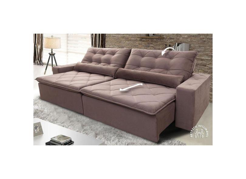 Sofá Retrátil/Reclinável Islândia 2,70m Suede Velut Tabaco c/ Molas no Assento - King House