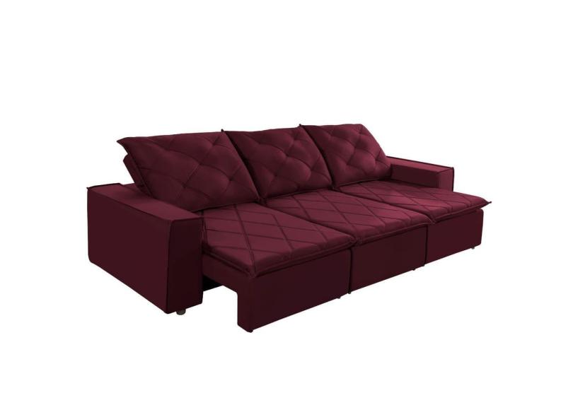 Sofá Retrátil Reclinável Italia 6 Lugares Veludo Bordo 280cm Megasul