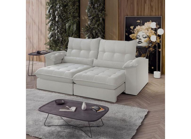 Sofá Retrátil Reclinável Molas Ensacadas Chicago 290 Cm Veludo Bege
