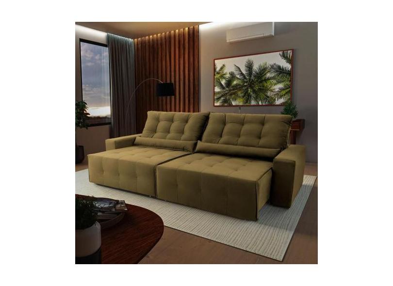 Sofá Retrátil Reclinável Montebello 2,10M Suede Velut Bege Molas No As