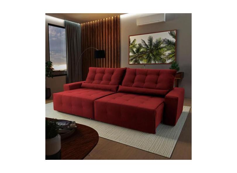 Sofá Retrátil Reclinável Montebello 2,50M Suede Velut Vermelho Molas N