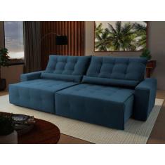 Sofá Retrátil Reclinável Montebello 3,00m Suede Velut Azul Marinho Mol