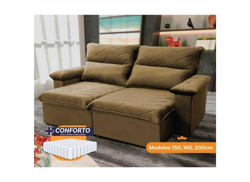 Sofá Retrátil Reclinável Paris 1,50m Suede Velut Bege Molas Ensacadas - King House
