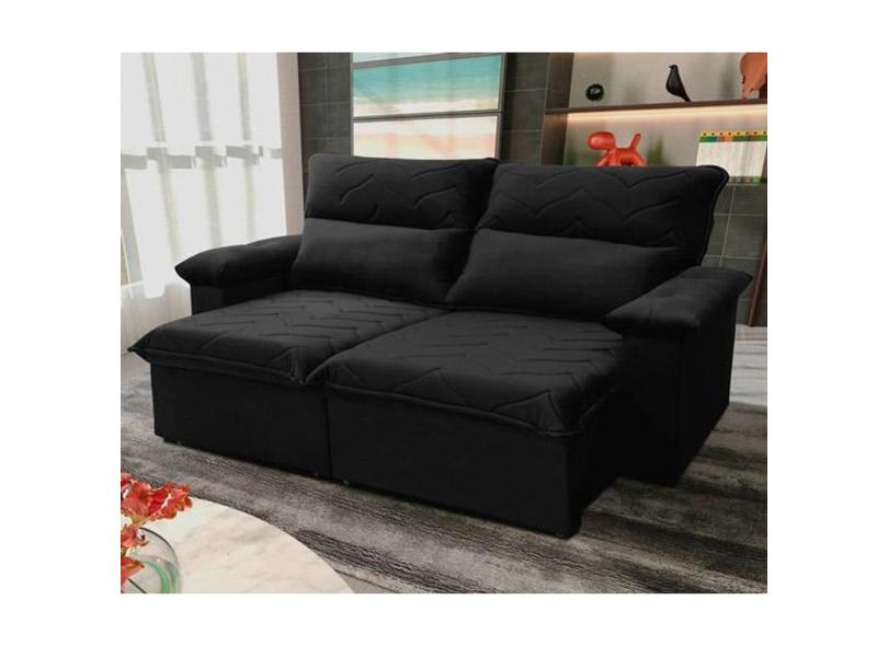 Sofá Retrátil Reclinável Paris 1,50m Suede Velut Preto Molas no Assento - King House