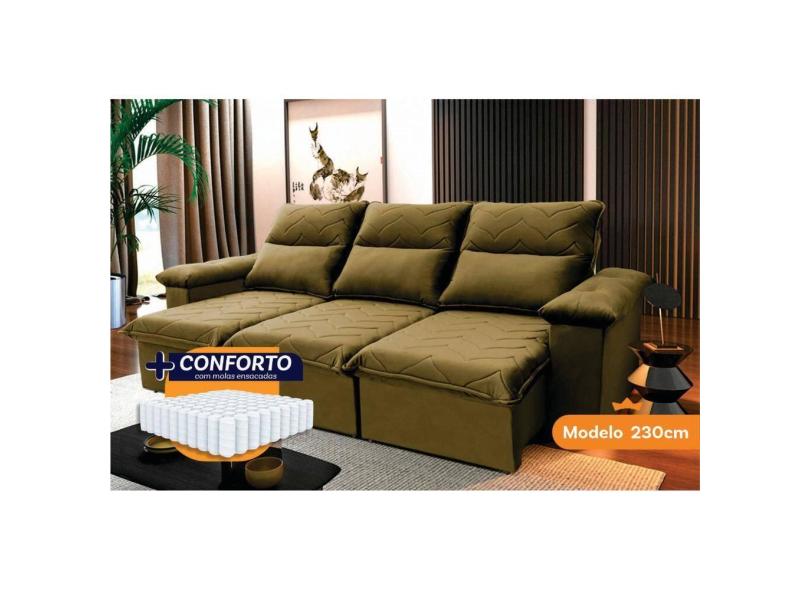 Sofá Retrátil Reclinável Paris 2,30m Suede Velut Bege Molas Ensacadas - King House