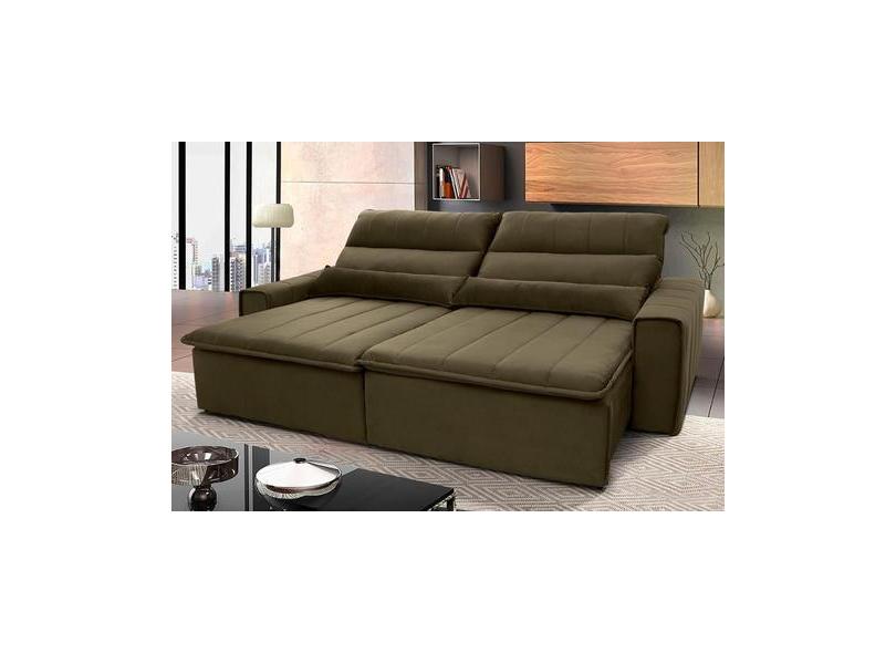 Sofá Retrátil Reclinável Patagônia 2,70M Suede Velut Bege Molas No Ass