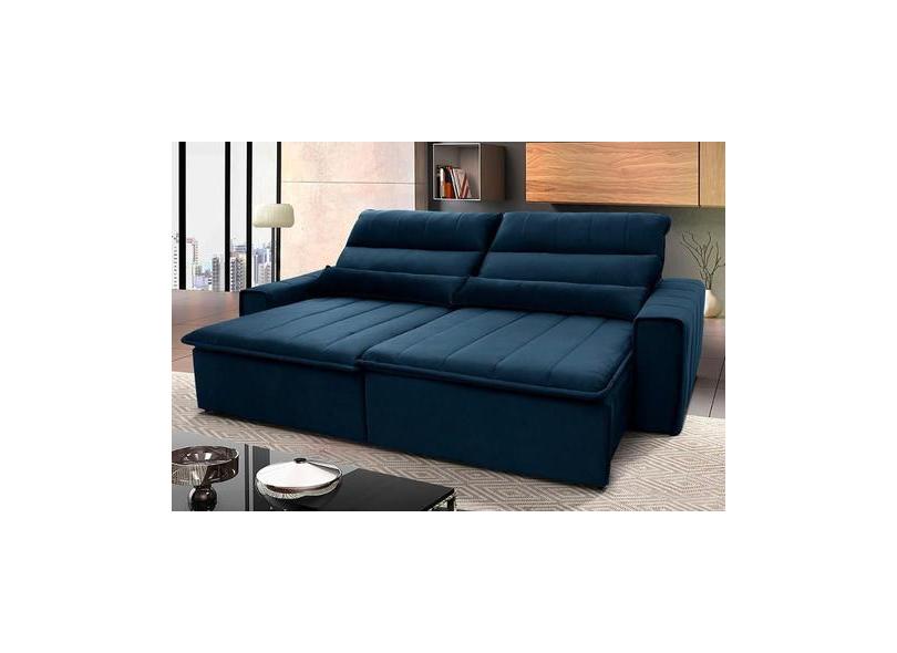 Sofá Retrátil Reclinável Patagônia 3,00m Suede Velut Azul Marinho Mola