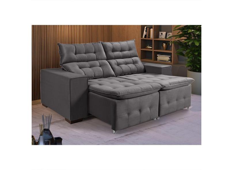 Sofá Retratil Reclinável Pillow Em Veludo 1,90 Grafite Cinza