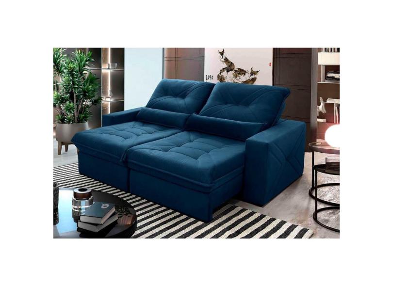 Sofá Retrátil Reclinável Sevilha 2,30m Suede Velut Azul Marinho Molas Ensacadas - King House
