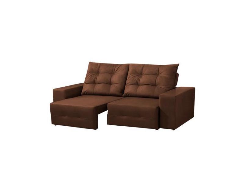 Sofá Retrátil Reclinável Specialle 3 Lugares Veludo Marrom 200cm Megas
