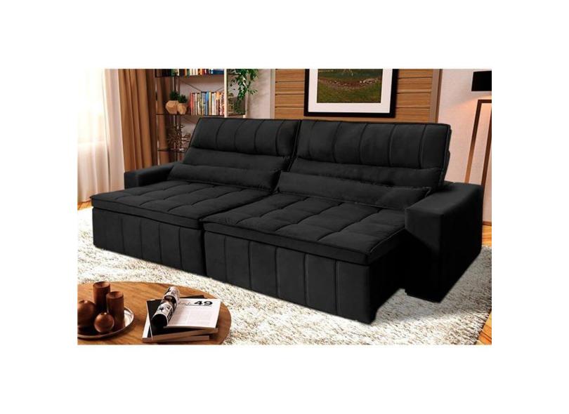 Sofá Retrátil Reclinável Supremo 3,00m Suede Velut Preto Molas no Assento - King House