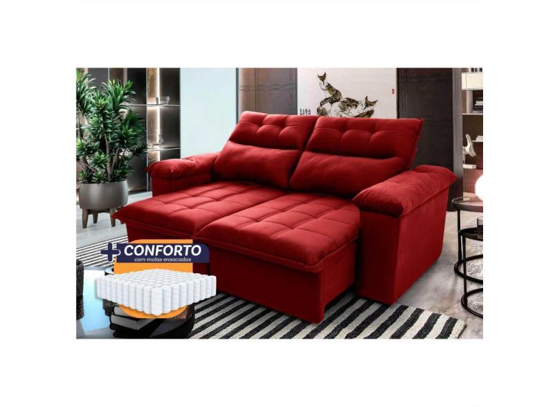 Sofá Retrátil Reclinável Verona 1,80m Suede Velut Vermelho Molas Ensacadas - King House
