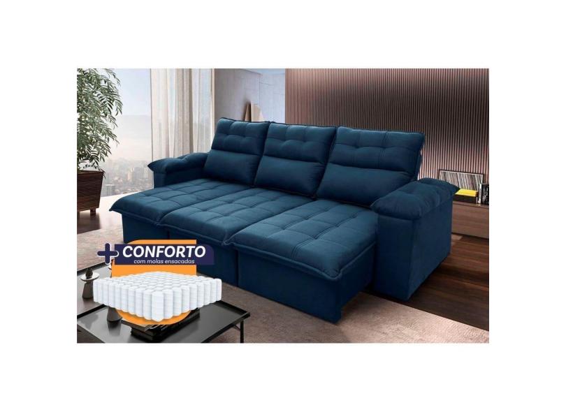 Sofá Retrátil Reclinável Verona 2,30m Suede Velut Azul Molas Ensacadas - King House