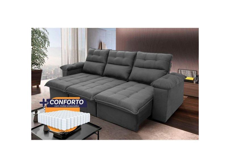Sofá Retrátil Reclinável Verona 2,30m Suede Velut Cinza c/ Molas Ensacadas - King House