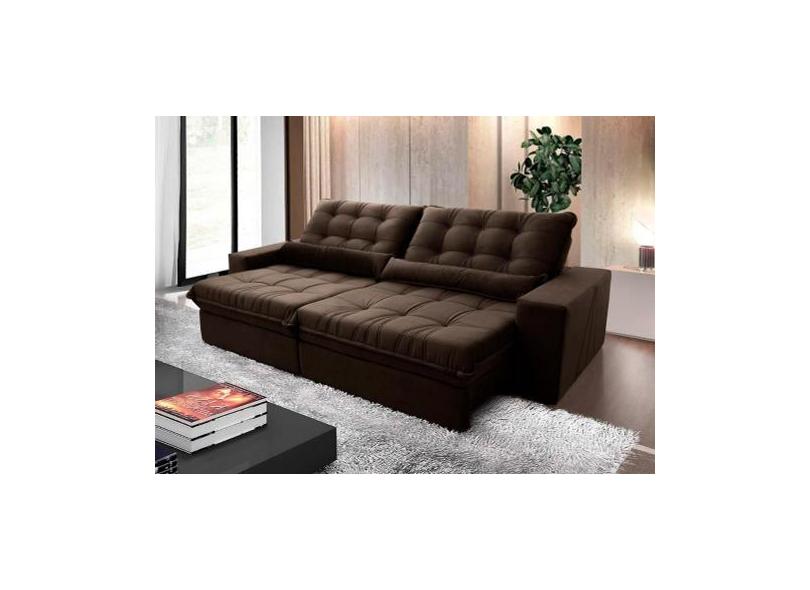 Sofá Retrátil/Reclinável Zurique 3,00M Suede Velut Marrom C/ Molas No