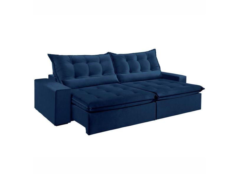 Sofá Roma Molas Ensacadas 210cm Retrátil e Reclinável Azul