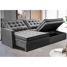 Sofá Sem Caixa Retrátil Baú 1,60m Cama Inbox Secret Suede Velusoft Cinza
