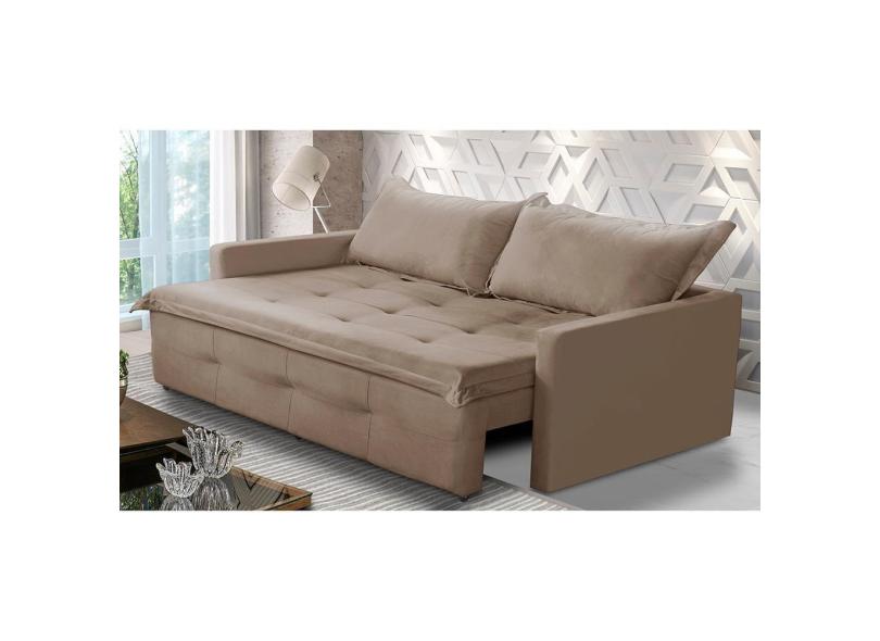 Sofá Sem Caixa Retrátil e Reclinável 1,65m com Molas Maísa Suede Cappuccino Adonai Estofados