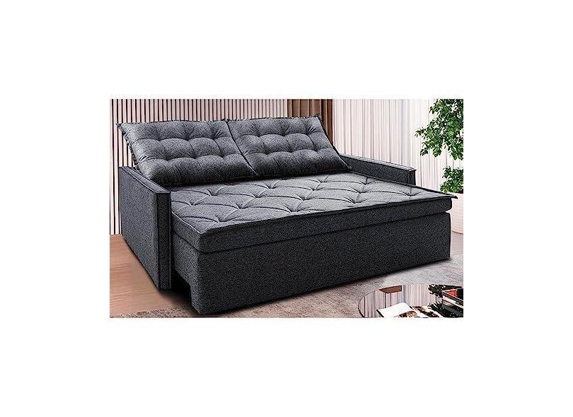 Sofá Sem Caixa Retrátil e Reclinável 1,85m Cama Inbox Flat Linho Cinza Escuro
