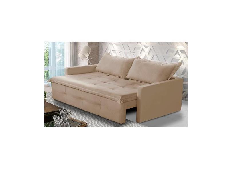 Sofá Sem Caixa Retrátil E Reclinável 1,85M Com Molas Maísa Suede Bege