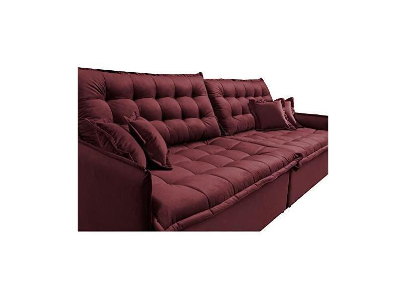 Sofá Sem Caixa Retrátil Reclinável 2,15m Cama Inbox Versátil com Pillow Top e Molas Velusoft Vinho