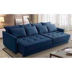 Sofá Sem Caixa Retrátil Reclinável 2,30m Carol Veludo Azul Adonai Estofados