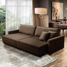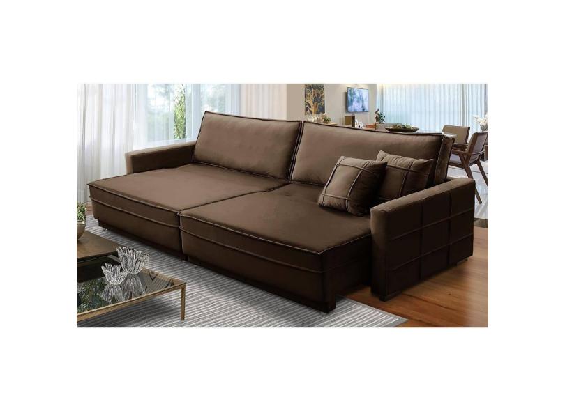 Sofá Sem Caixa Retrátil Reclinável 2,50m Karen Veludo Marrom Adonai Estofados