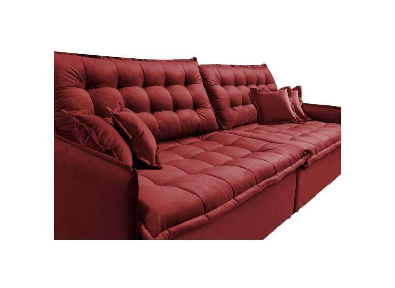 Sofá Sem Caixa Retrátil Reclinável 2,55m Cama Inbox Versátil De Pillow Top E Molas Velusoft Vermelho