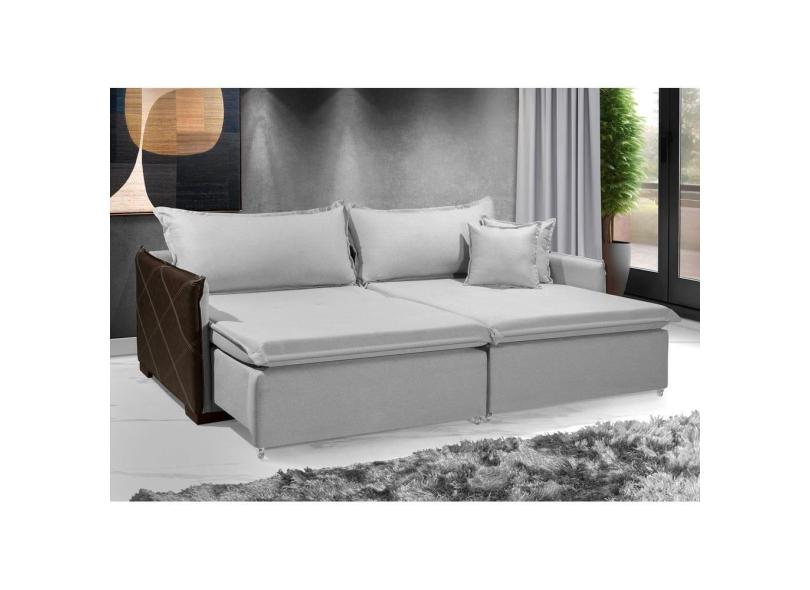 Sofá sem Caixa Sofá Retrátil Reclinável MÔNACO 2,20m ESTILO ESTOFADOS - França Linhosoft COR "Prata"
