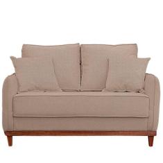 Sofa Sena 2 Lugares Base De Madeira Para Sala Hotel Linho Bege