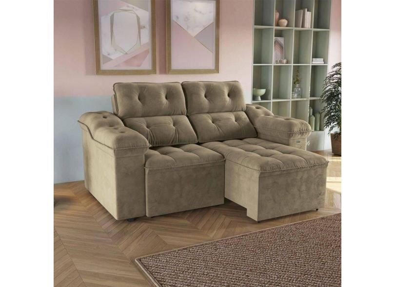 Sofá Sierra 230cm Com Molas Ensacadas Reclinável Kappesberg Bege