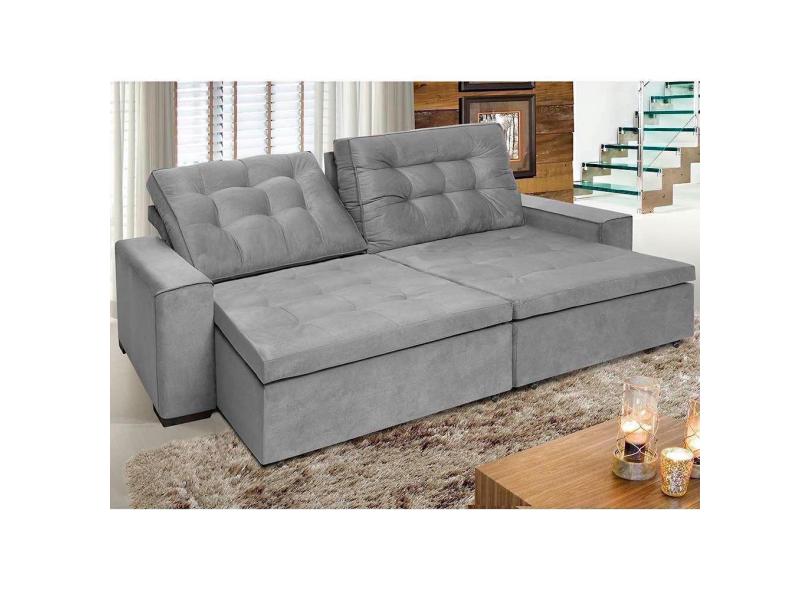 Sofá Tunísia 2,50 Mts Retrátil E Reclinável Pluma Cinza