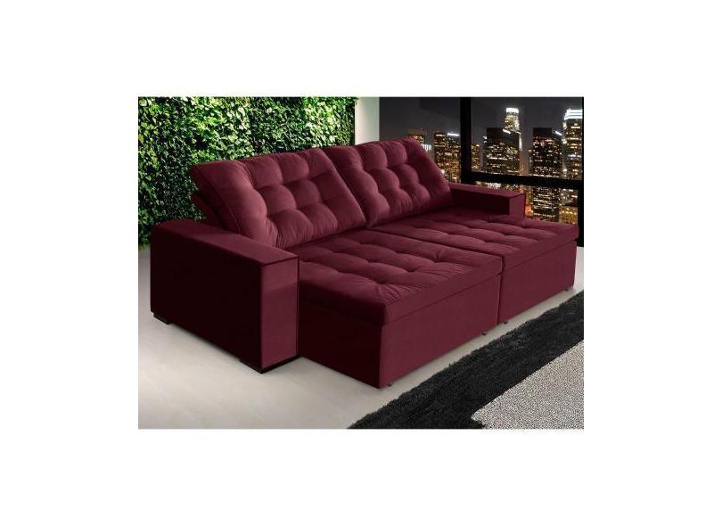 sofá tunísia 2,50 mts retrátil e reclinável pluma vinho - Sofá Casa