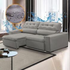 Sofá Veludo Impermeável Retrátil Reclinável Chicago 230 Cm Cinza Claro