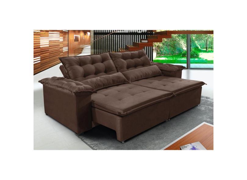 Sofá Veneza 250cm Retrátil com Molas - Marrom