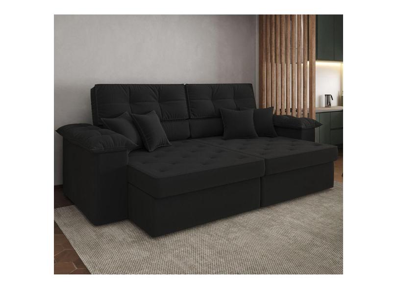 Sofá Vili Retrátil 3 Lugares Suede Preto 215cm Preto