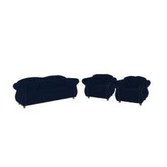 Um Sofá 3 Lugares + Duas Poltronas Chesterfield Merlo- Suede Azul Mari