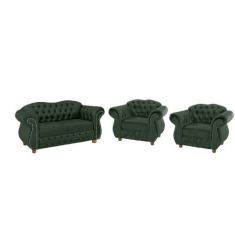 Um Sofá Chesterfield Merlo 2 Lugares 2,30 + Duas Poltronas - Suede Ver