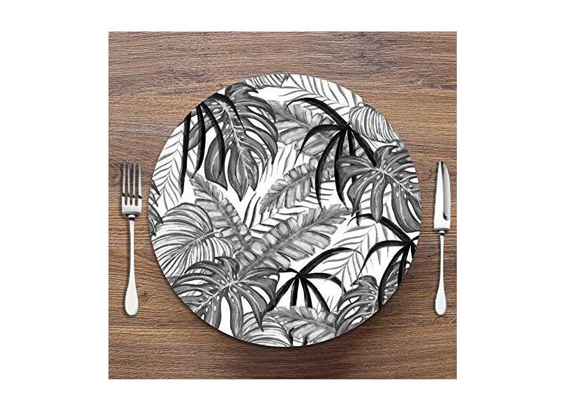 Sousplat Costela de Adão Preto e Branco em MDF 35x35cm 2 Peças