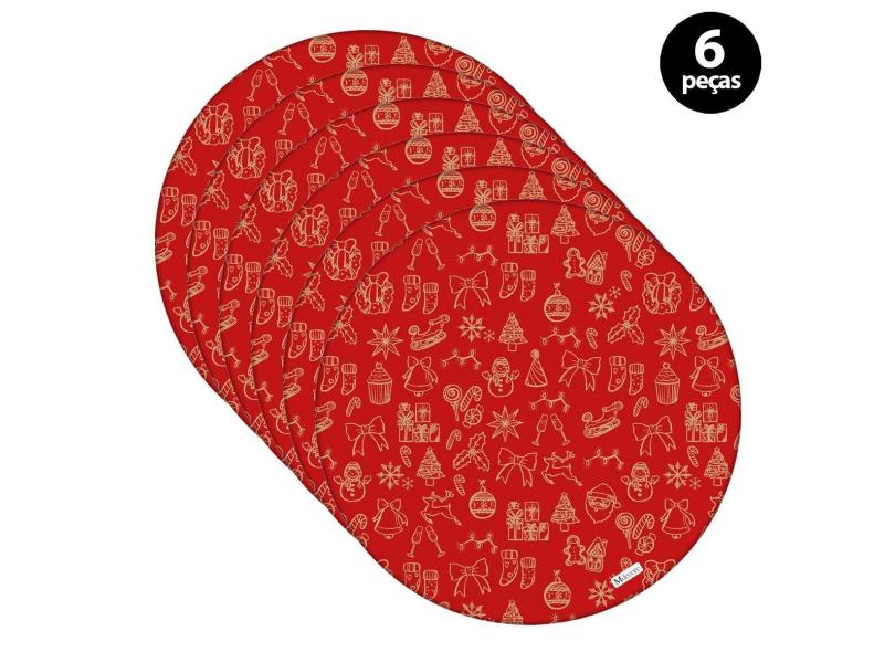 Sousplat Mdecore Natal Boneco de Neve 32x32cm Vermelho 6pçs