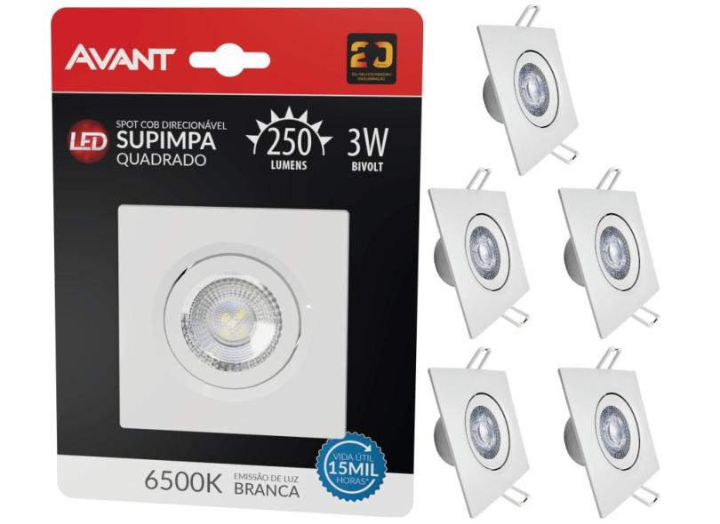 Kit 6 Spot Led Embutir 3W Quadrado 6500K Frio Avant