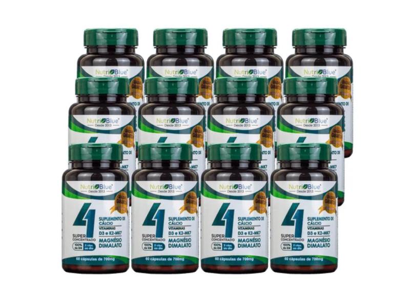 12 Frascos - Quarteto Vitamínico Nutriblue (Magnésio Dimalato, D3, K2 E Cálcio)