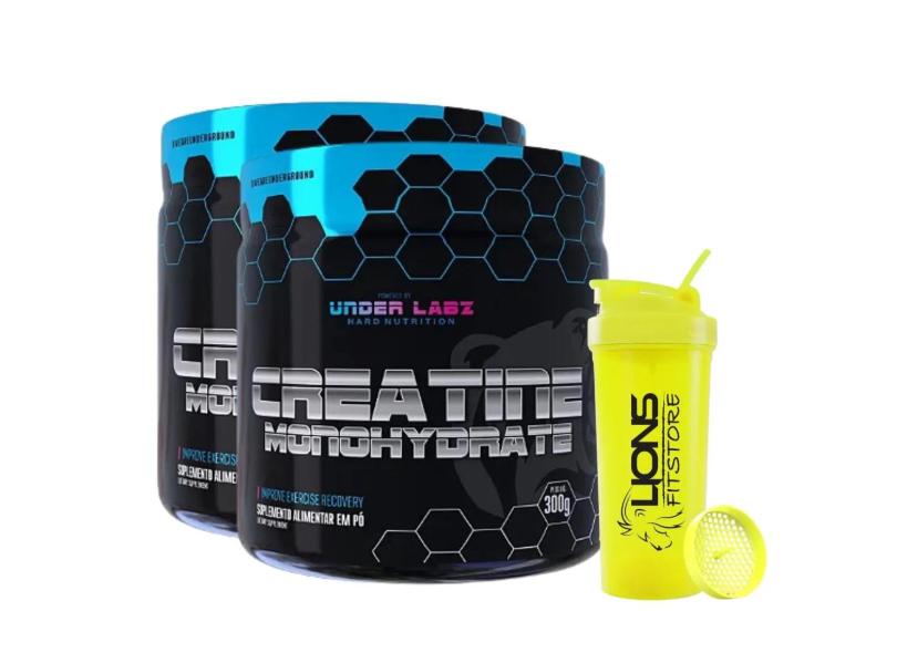 2X Creatina 100% Monohidratada Under Labz 300 G + Coqueteleira Cor Sortida Sem Sabor