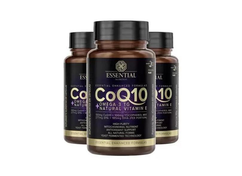 3 Potes, Suplemento Em Cápsulas Essential Nutrition Coq10 Omega 3 Coq1